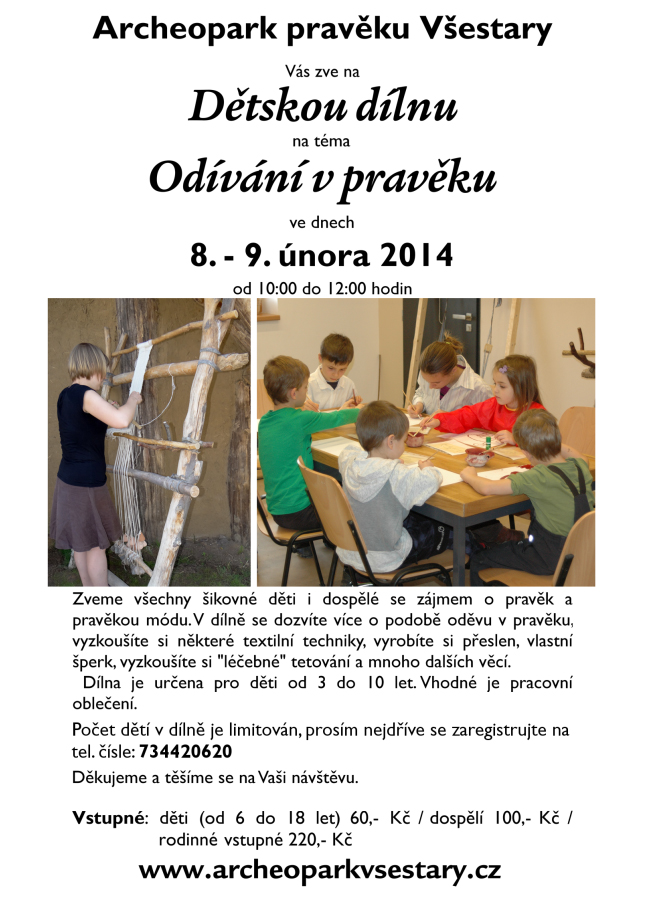Dětská dílna Odívání v pravěku v Archeoparku pravěku ve Všestarech